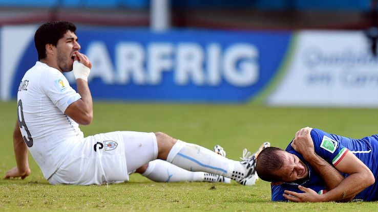June 2014 - Alimng'ata Giorgio Chiellini wa Italy kwenye mchezo wa raundi ya pili ya kombe la Dunia na kuambulia kifungo cha miezi minne.